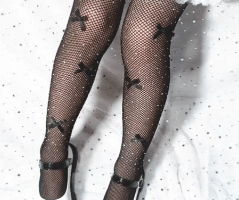 The fishnet tights are free size and stretch for size 1-12y